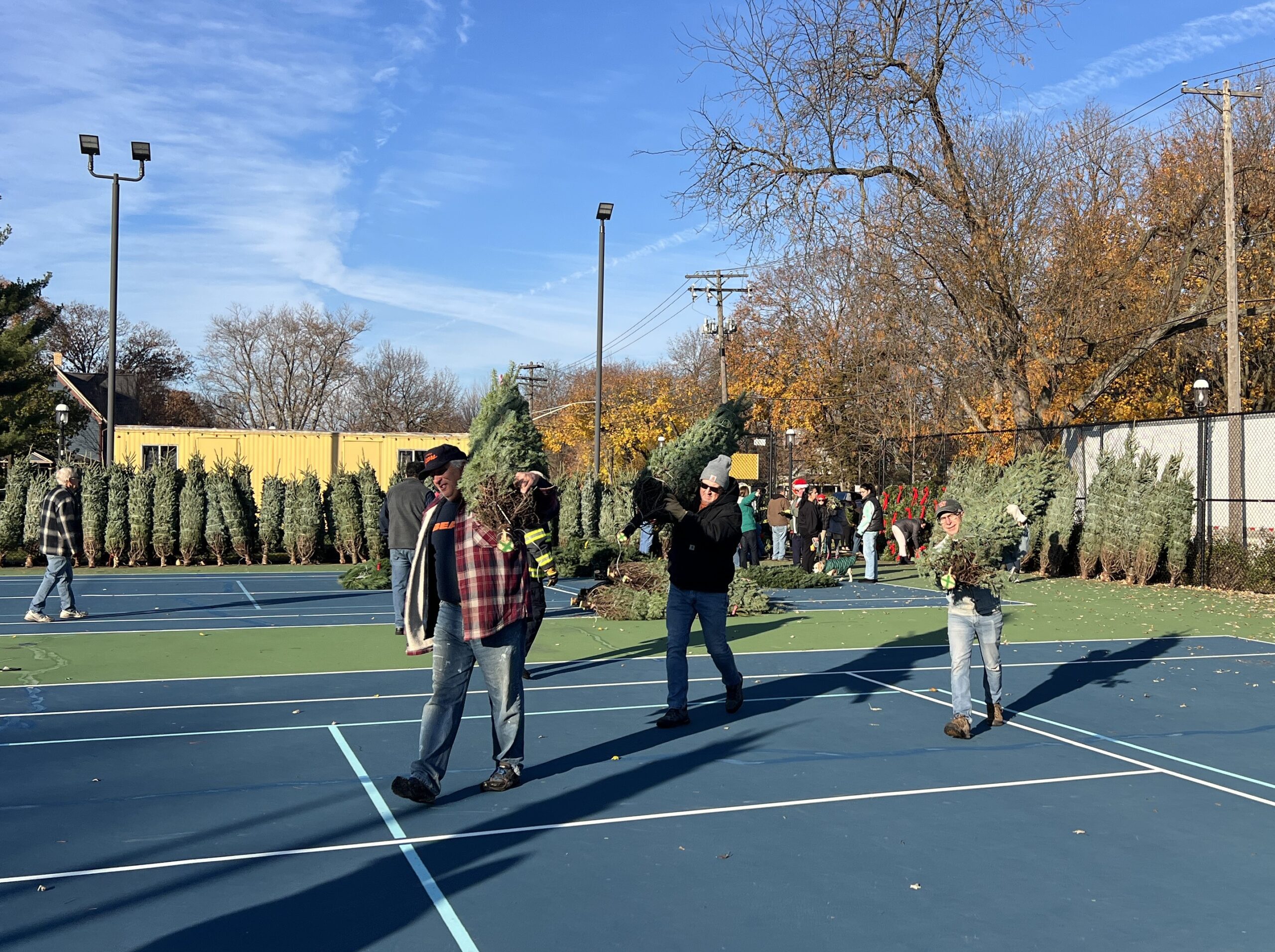 Two guys caring tress